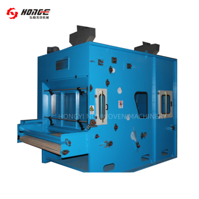 2. Các gai và lưới xiêncấp liệu sợiđược giaobởi máy mở chính. Con lăn làm đều sẽ loại bỏ sợi thừa và bộ phận tước sẽ tước sợi và sau đó các sợi rơi xuống buồng rung. ViệcBắt đầu-Dừngcủagai và xiênlướisẽ